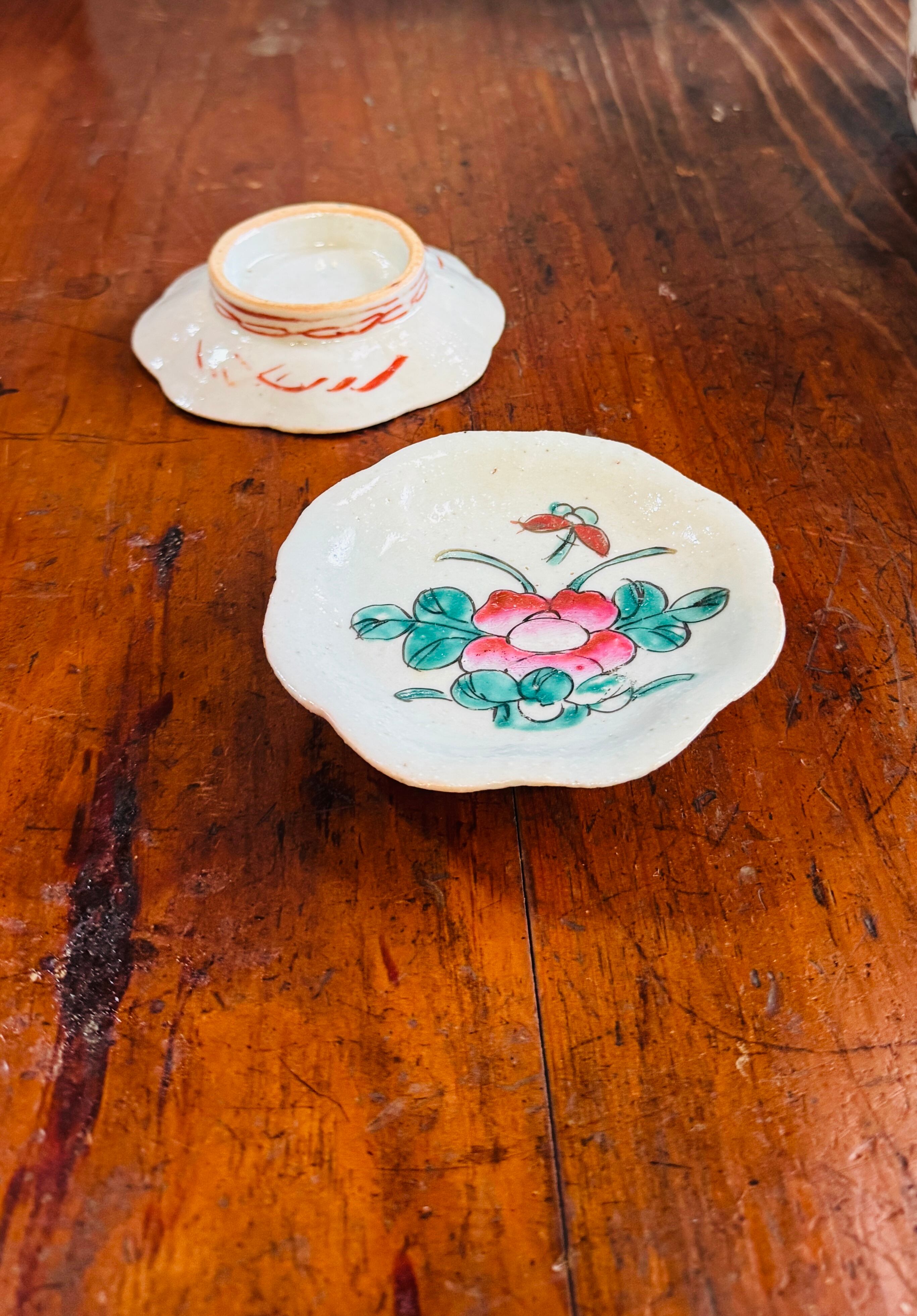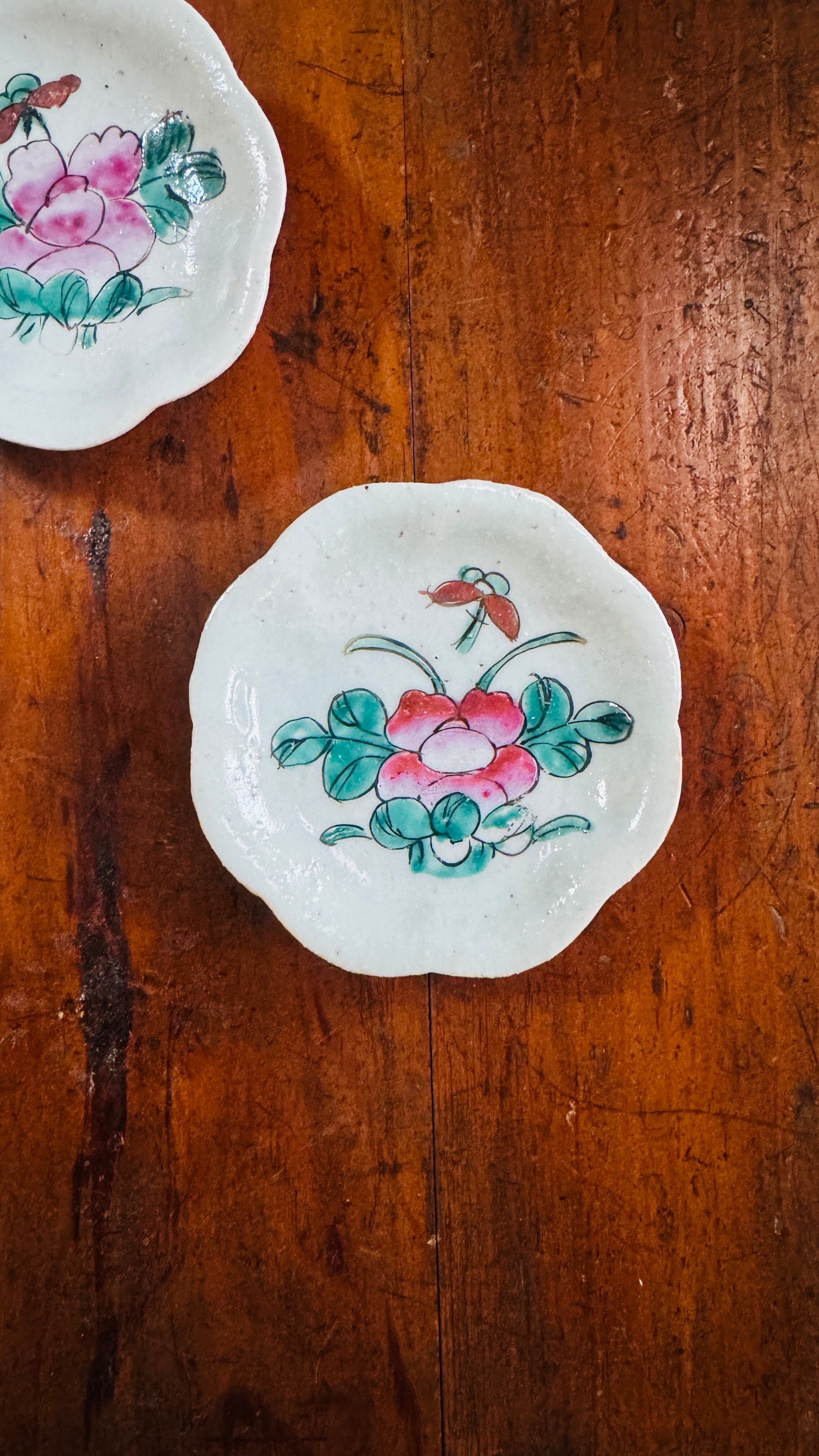 清朝期 粉彩花文輪花小皿|中国古玩 美術皿
