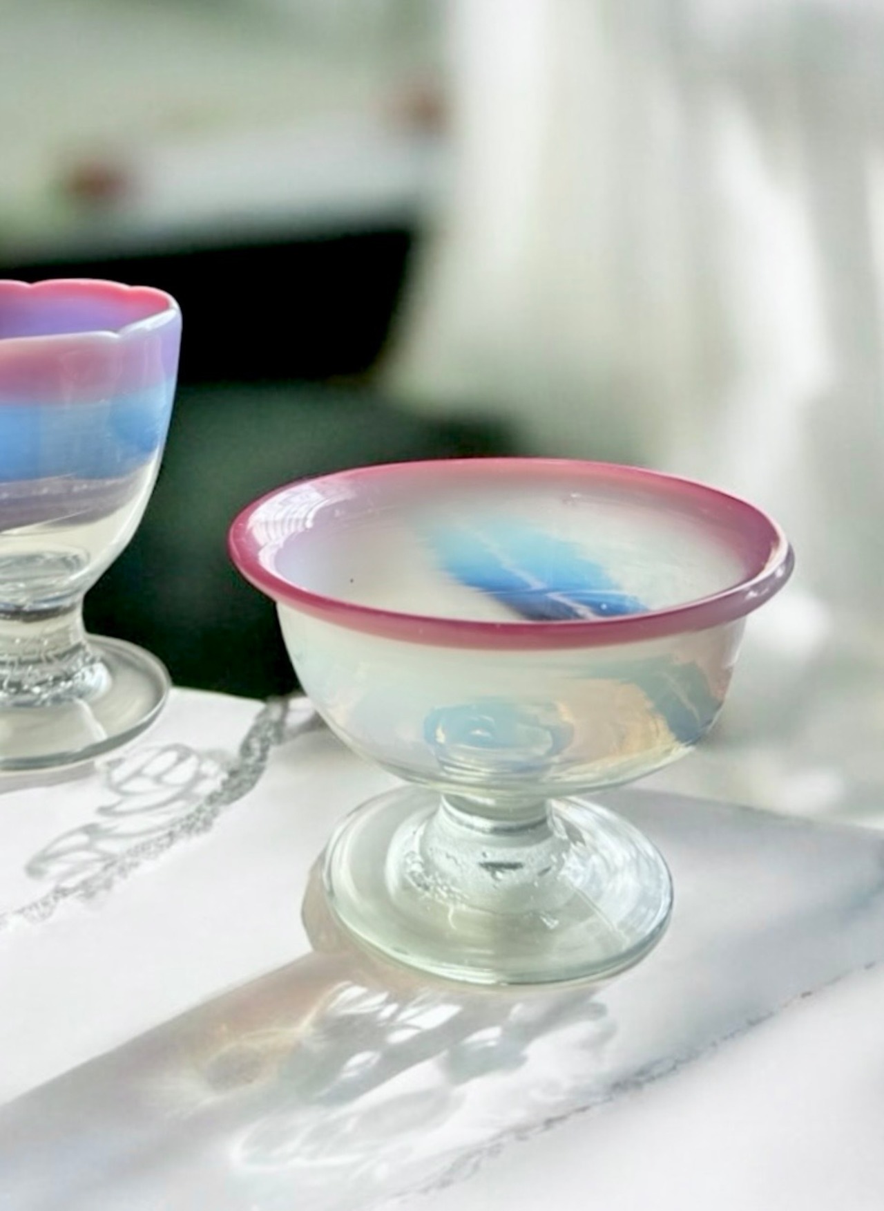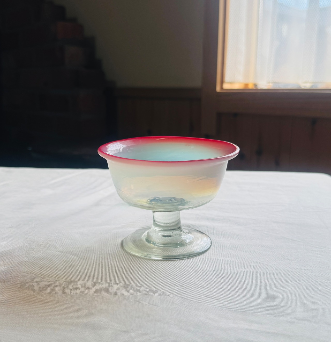 古いガラスならではの、ほんの少しのゆらぎや気泡が、
