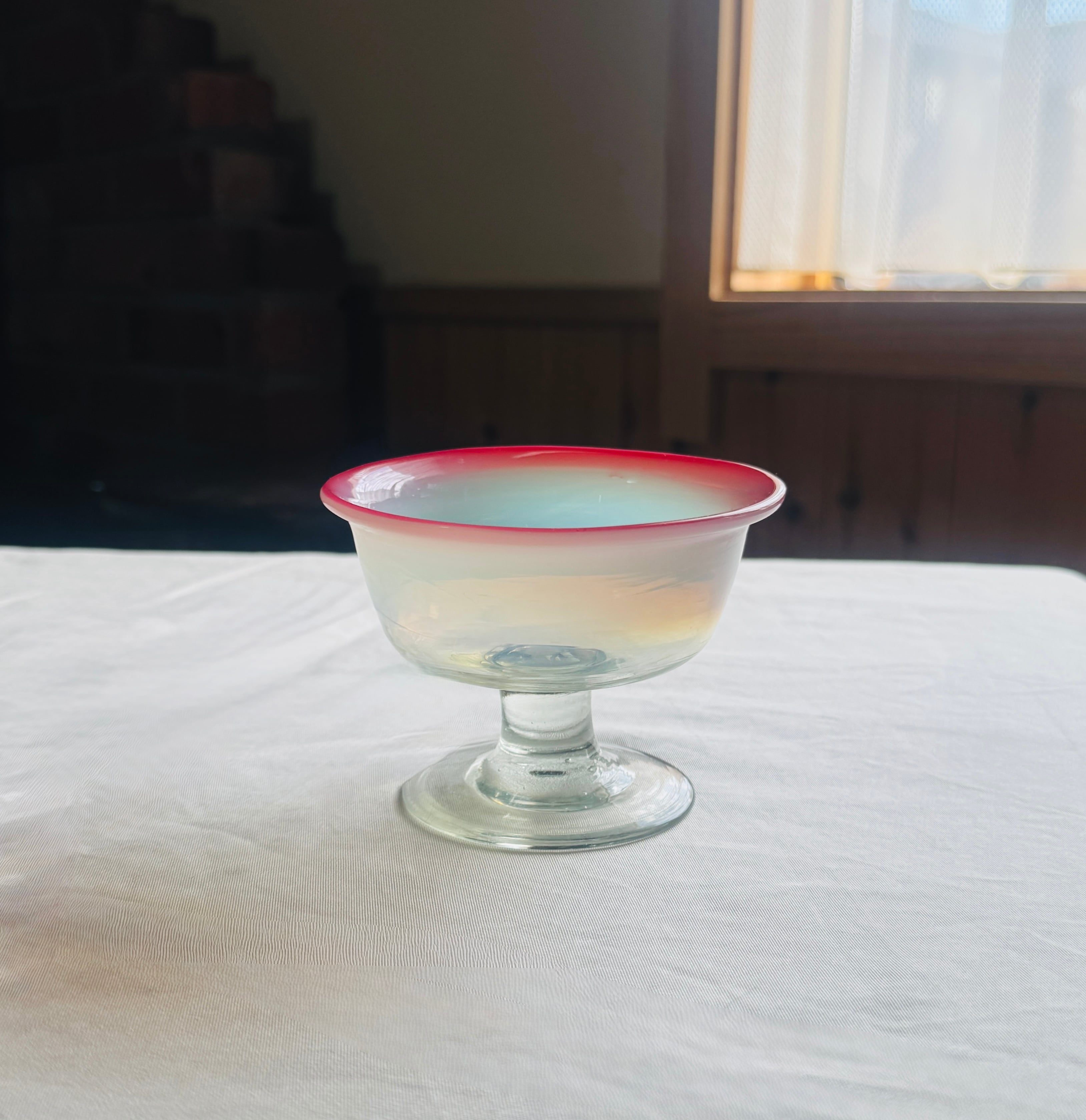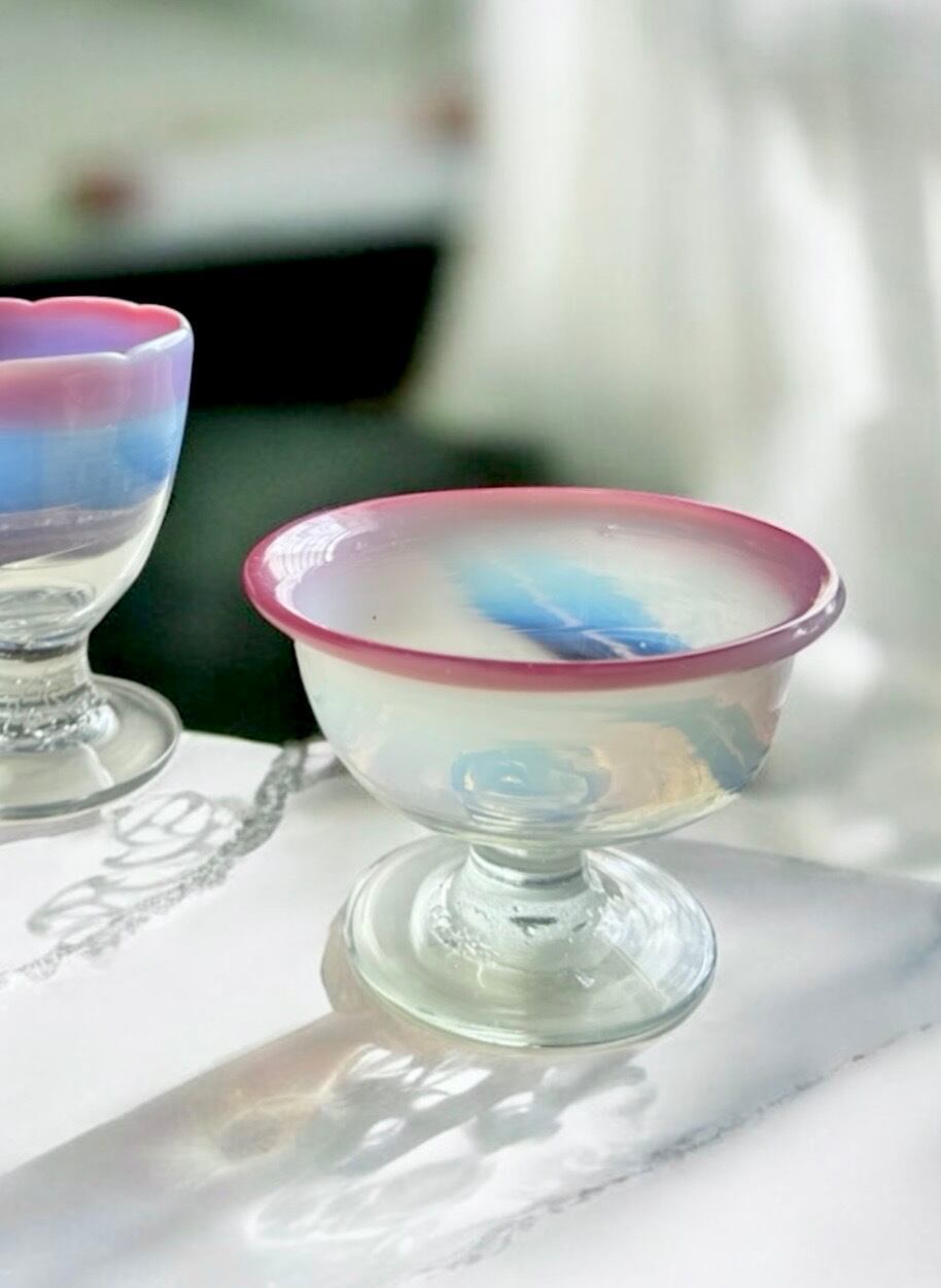大正期氷コップ ゆらゆらガラス 乳白色1客 アンティークガラス