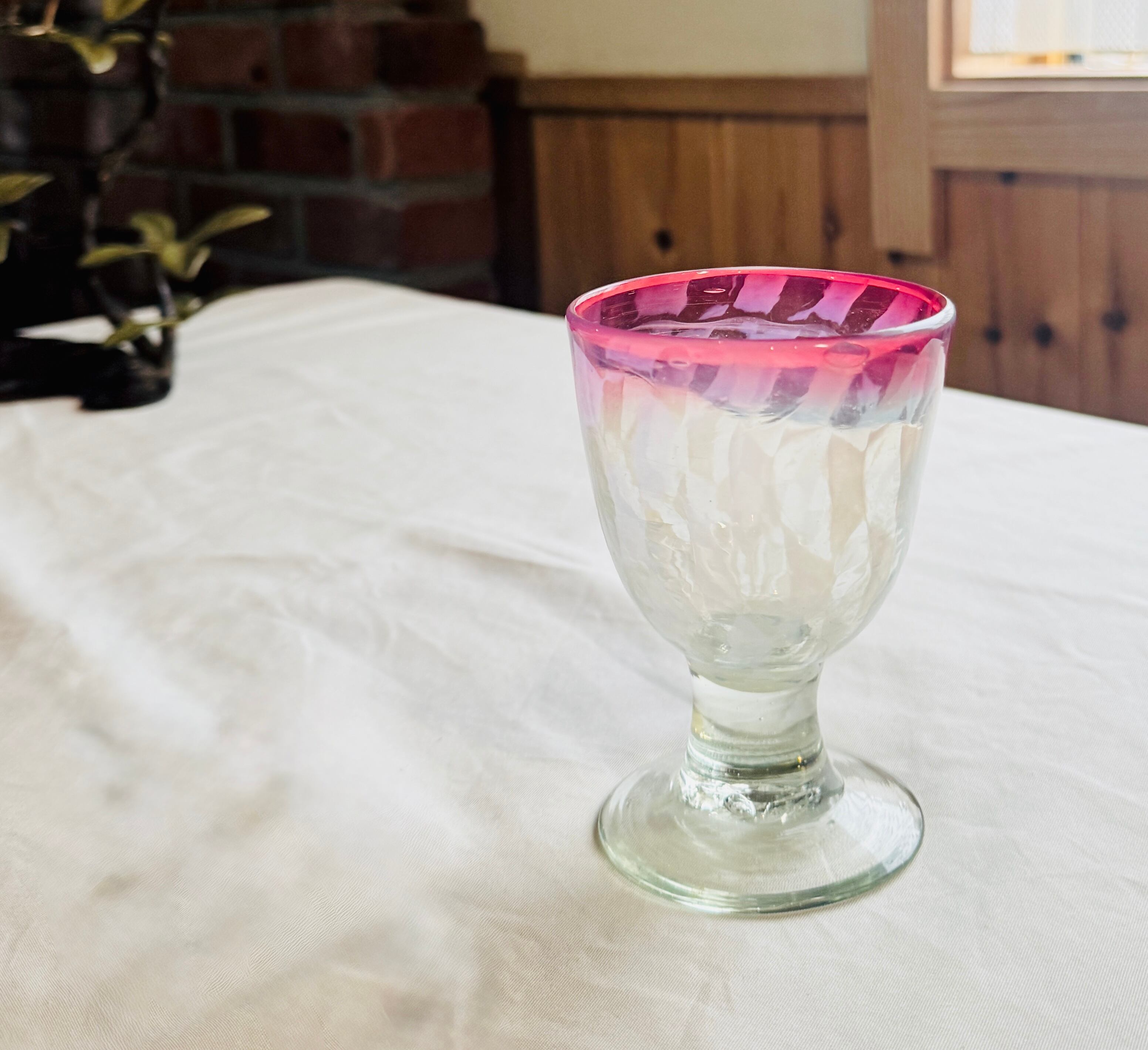 テーブルに置くだけでぱっと華やぎ、季節のデザートや冷茶を入れても絵になります。