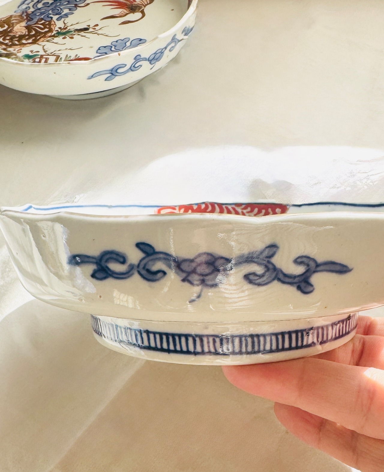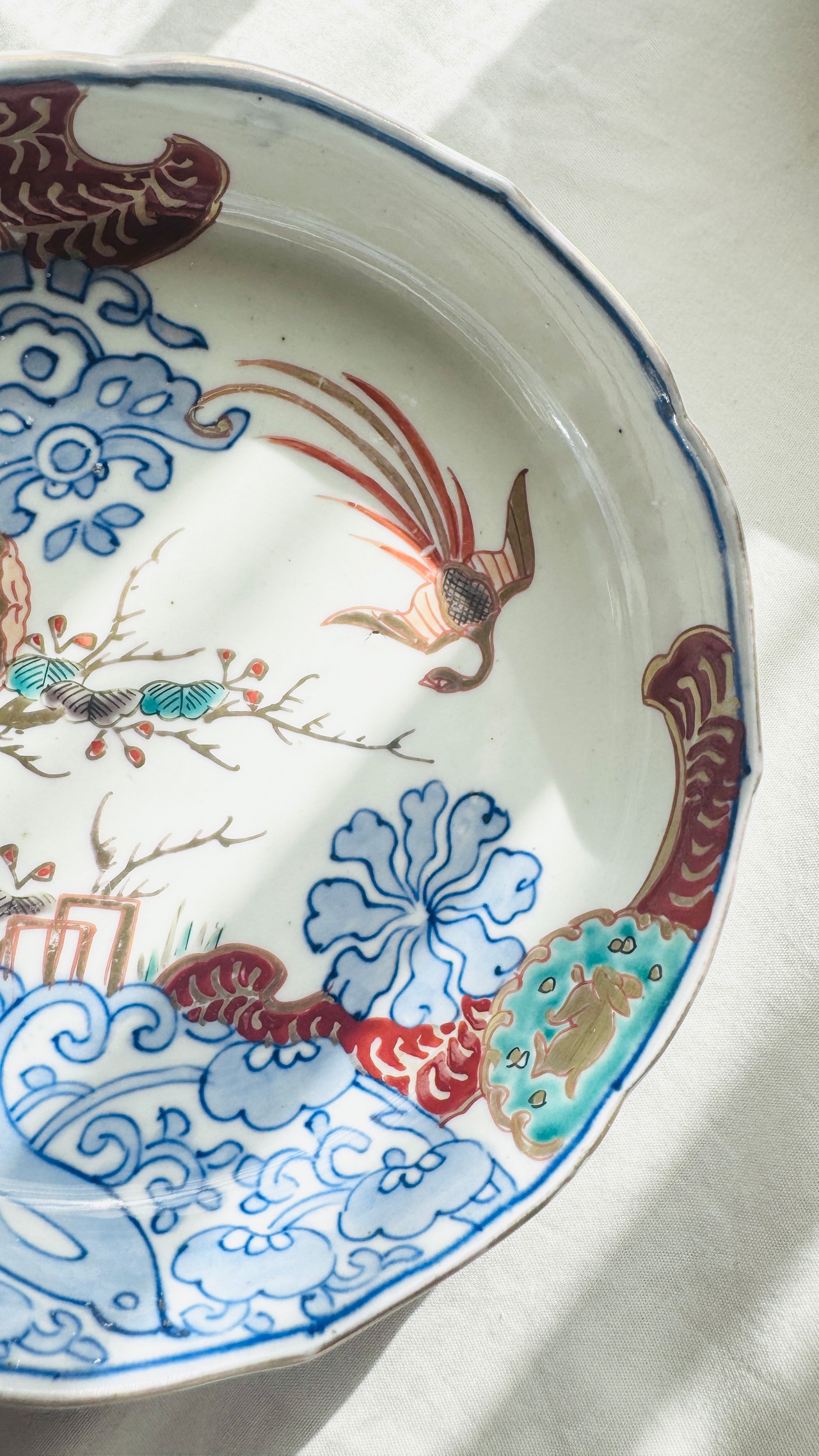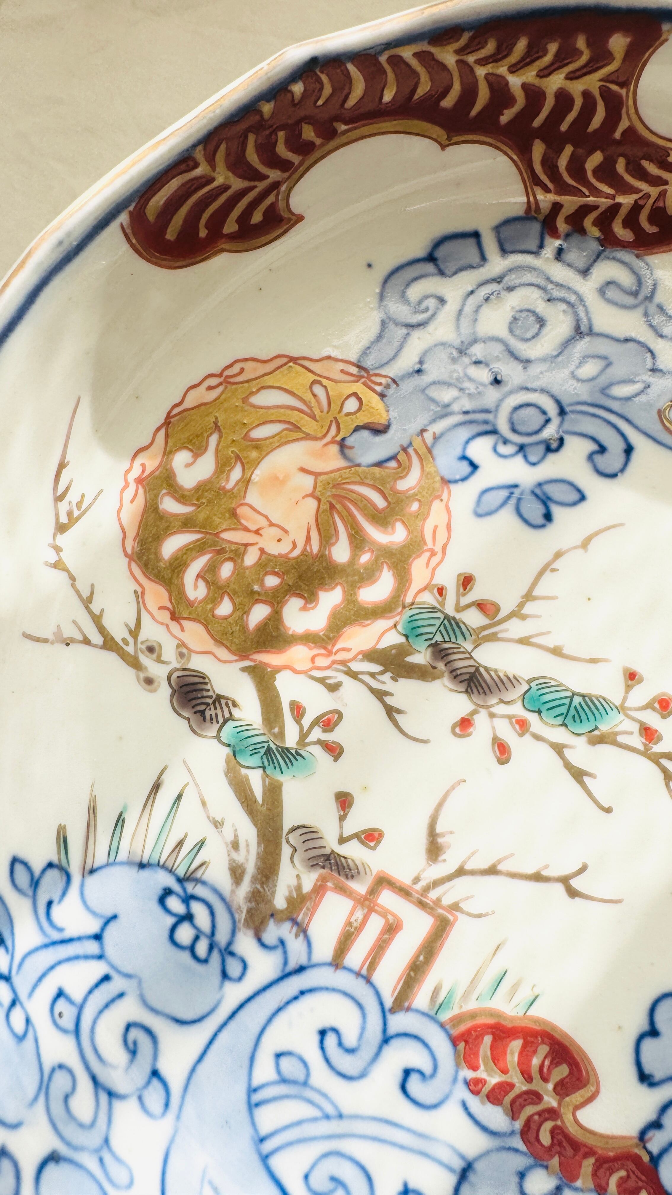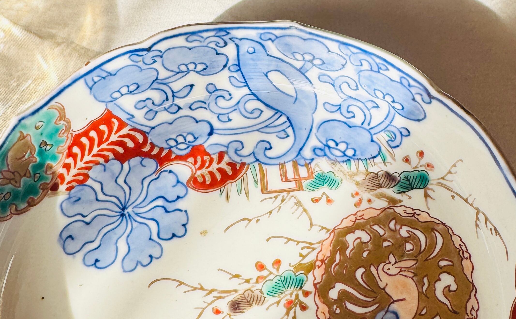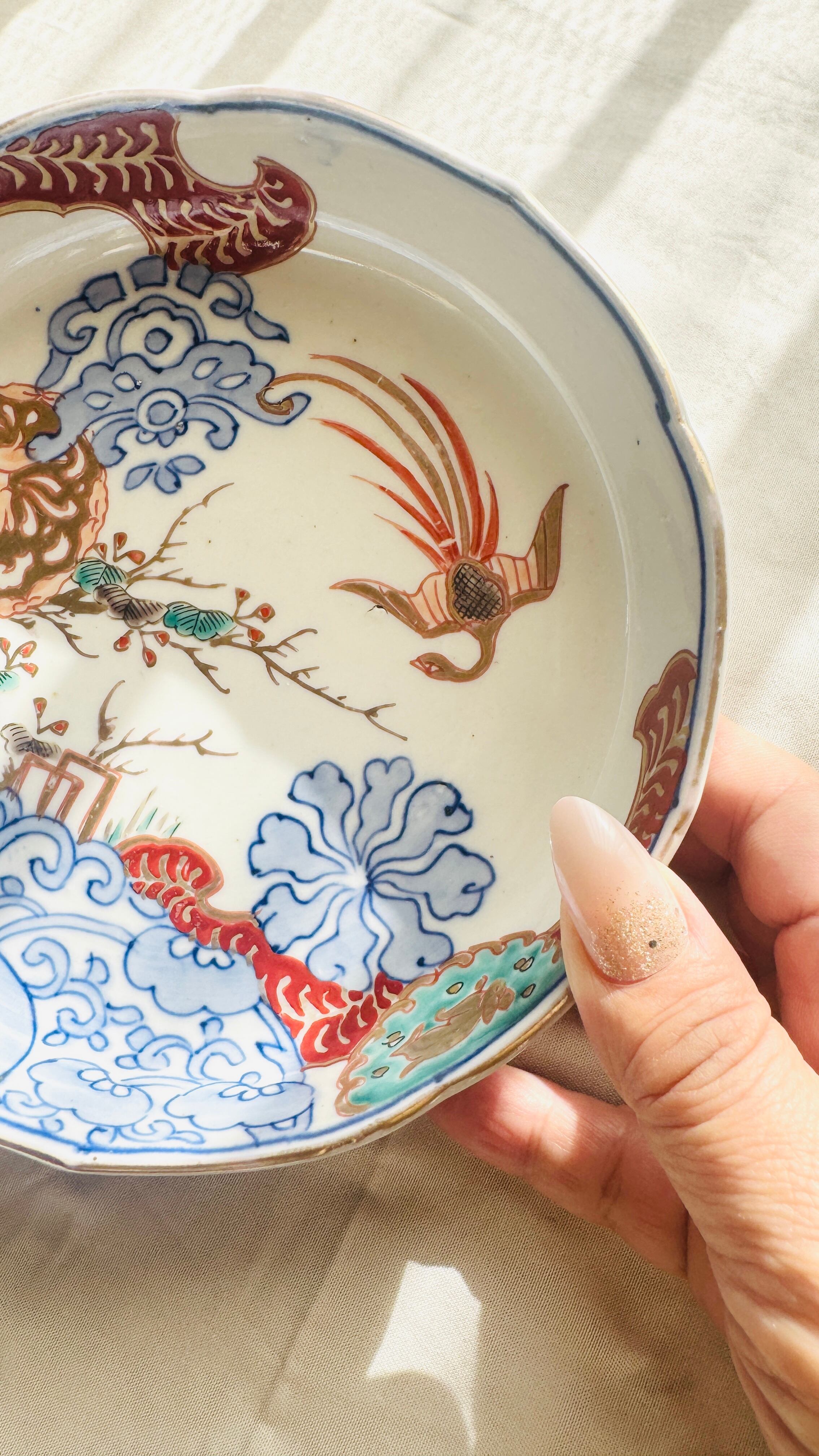 稀少 古伊万里 輪花皿 うさぎ鳳凰文 上品で華やかな骨董皿