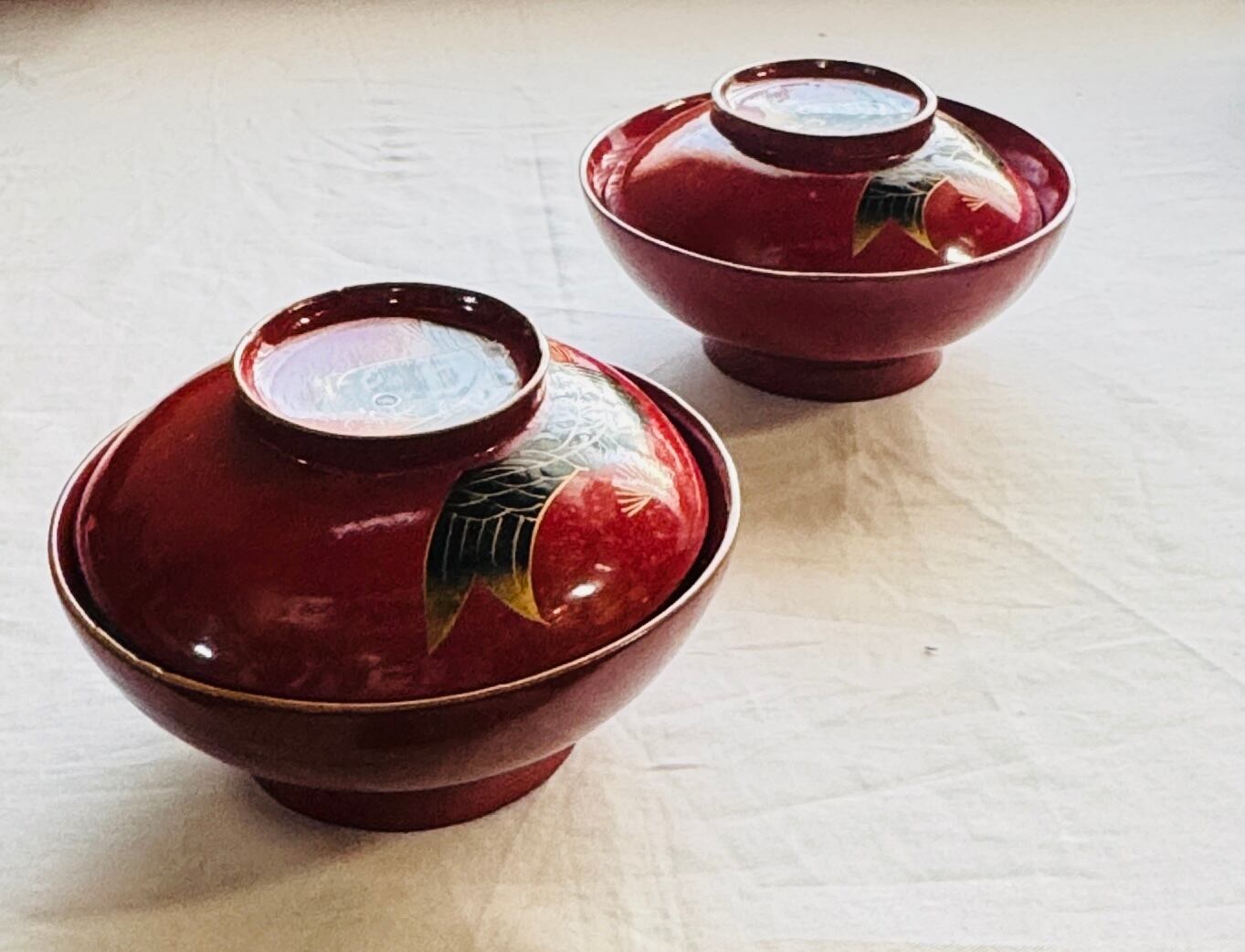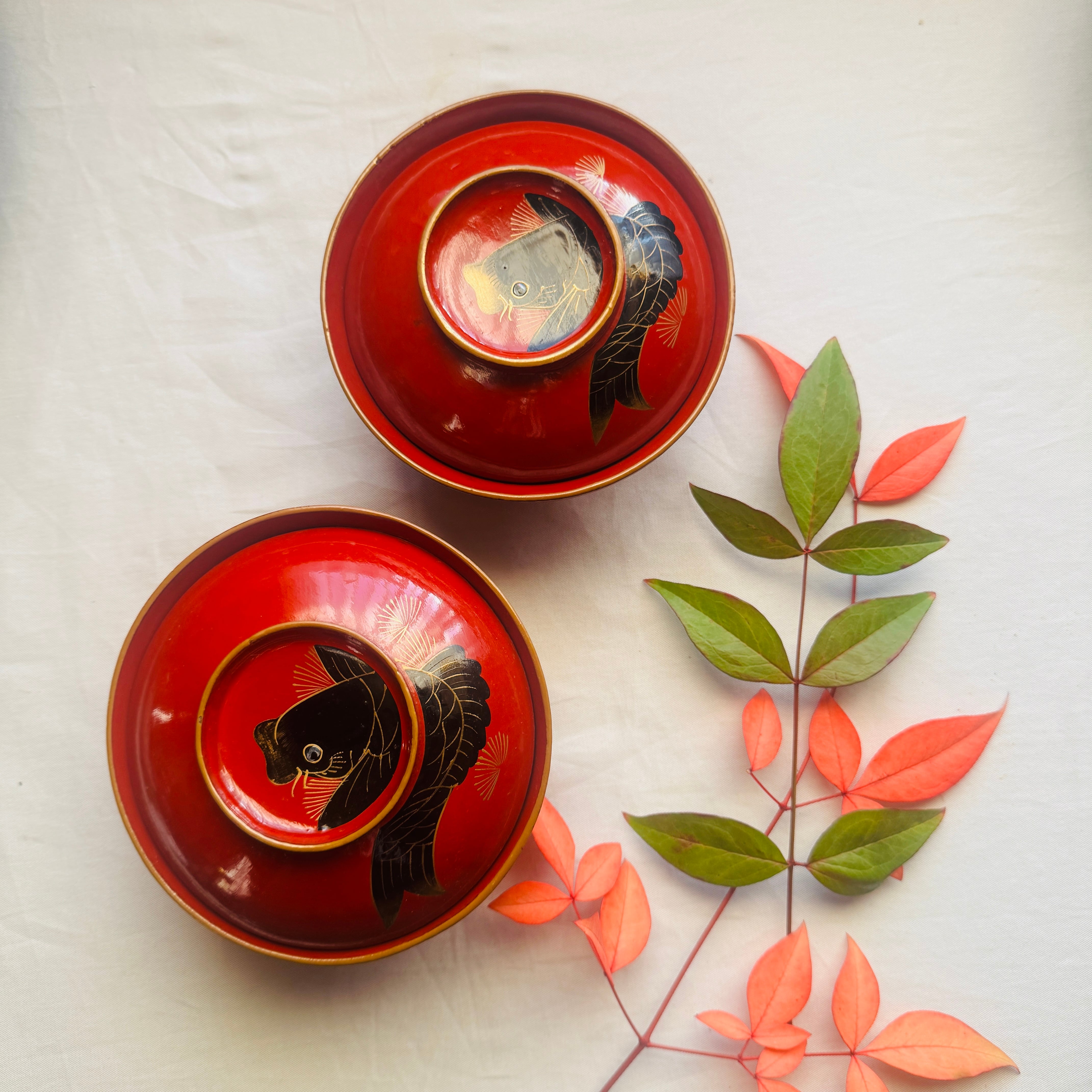 金蒔絵吸物椀2客 木製漆器 時代漆 明治期 鯉目螺鈿