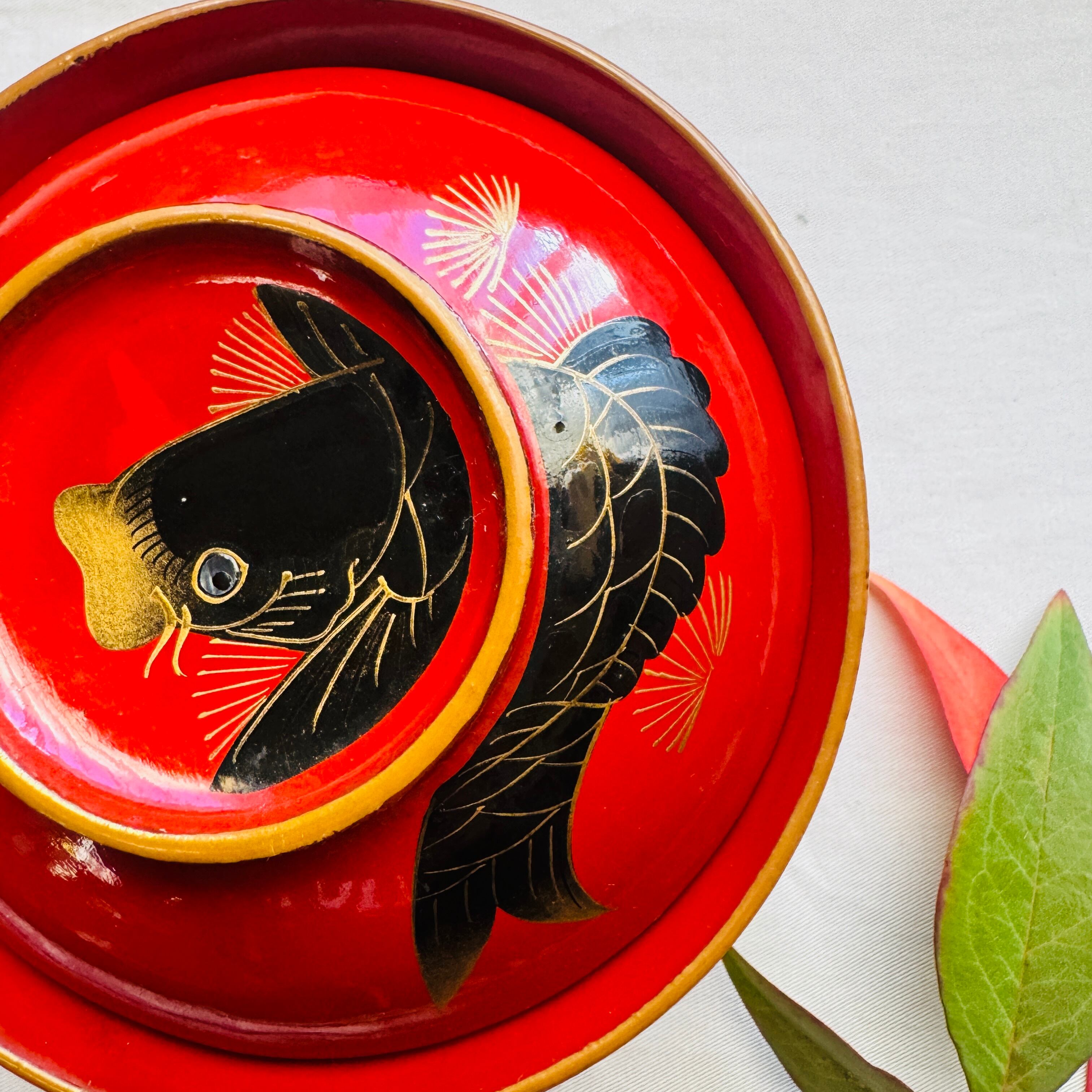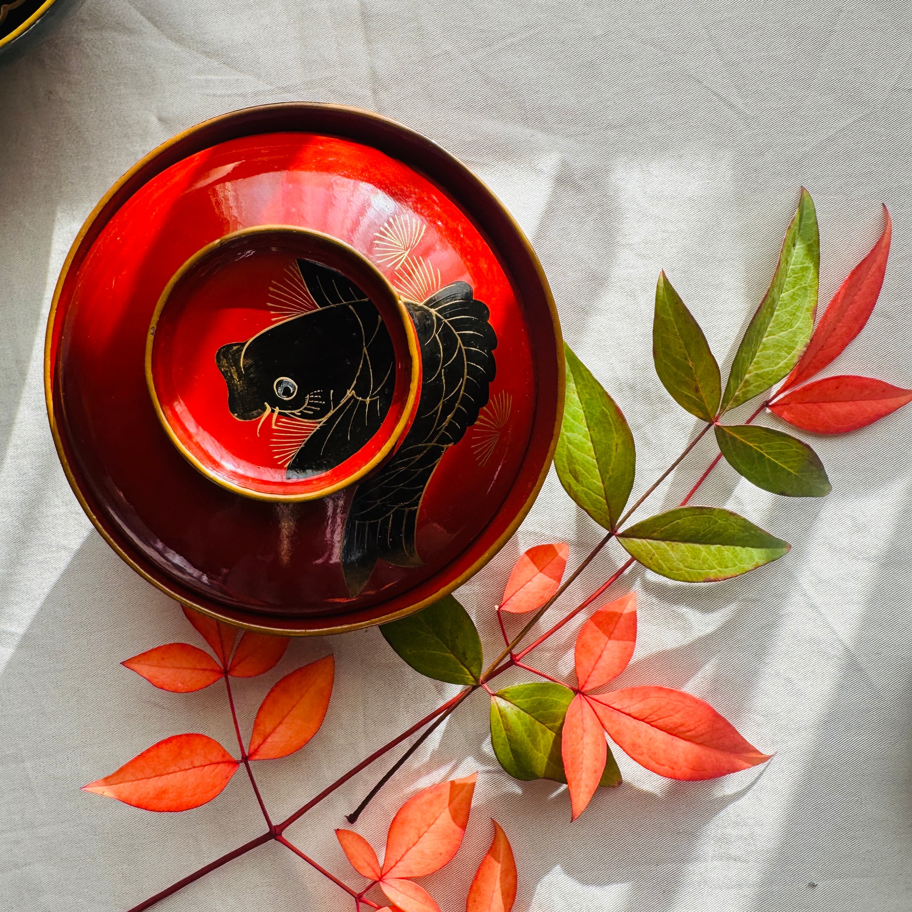 明治期の時代椀 鯉の金蒔絵と螺鈿が美しい吸物椀です。