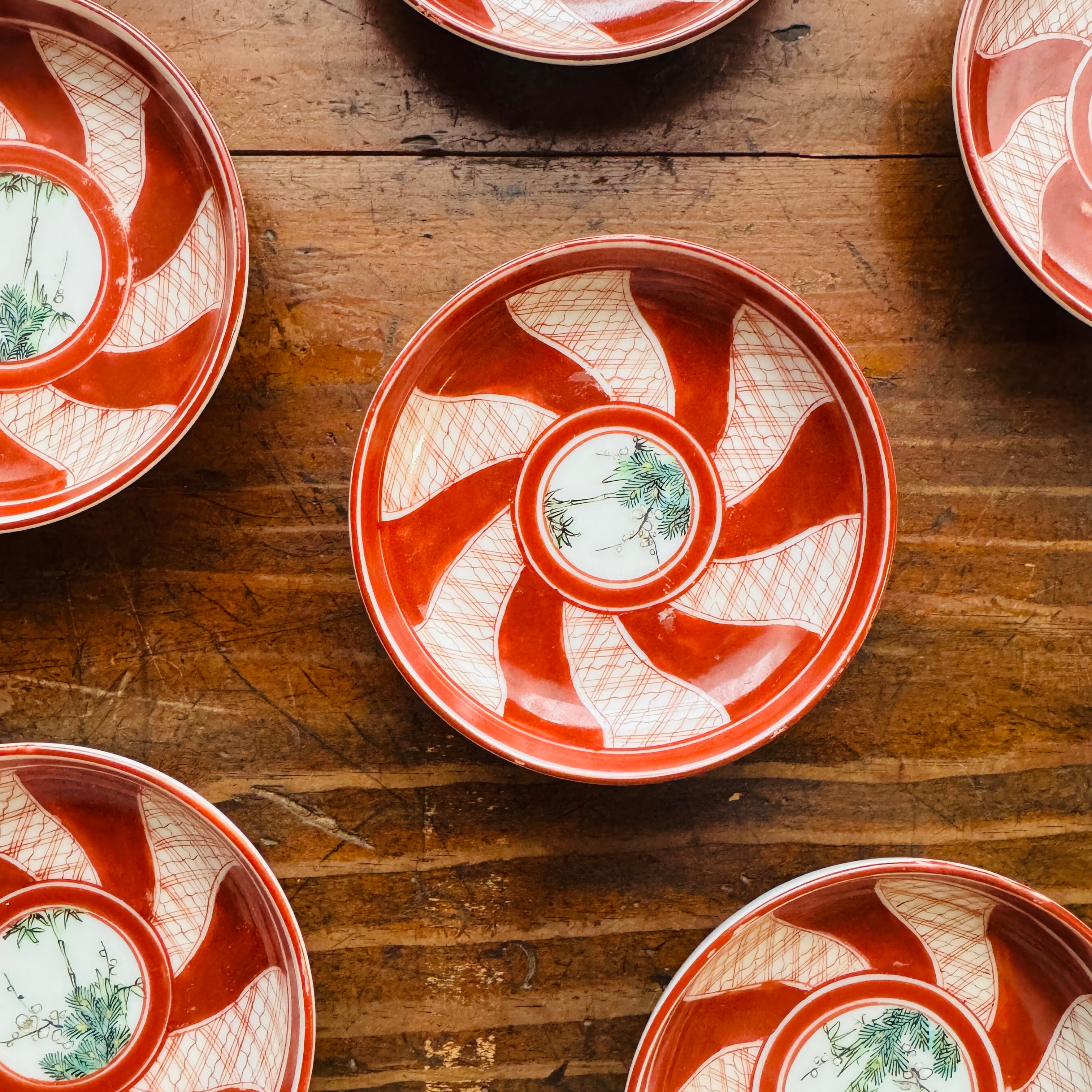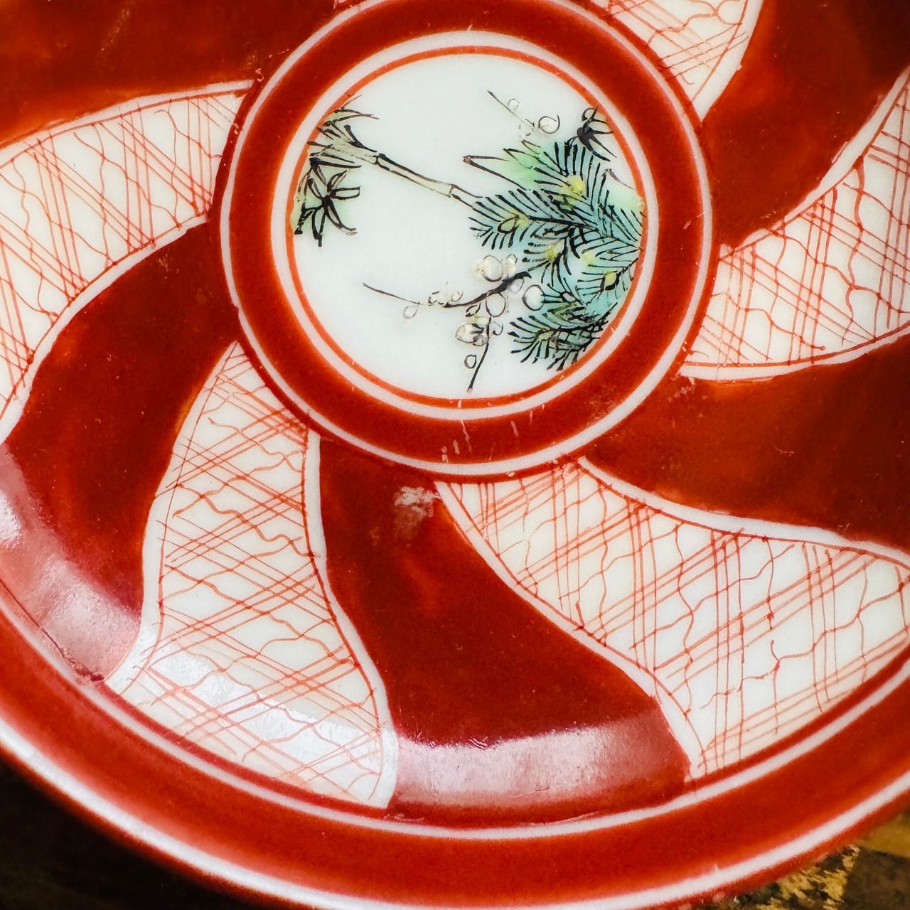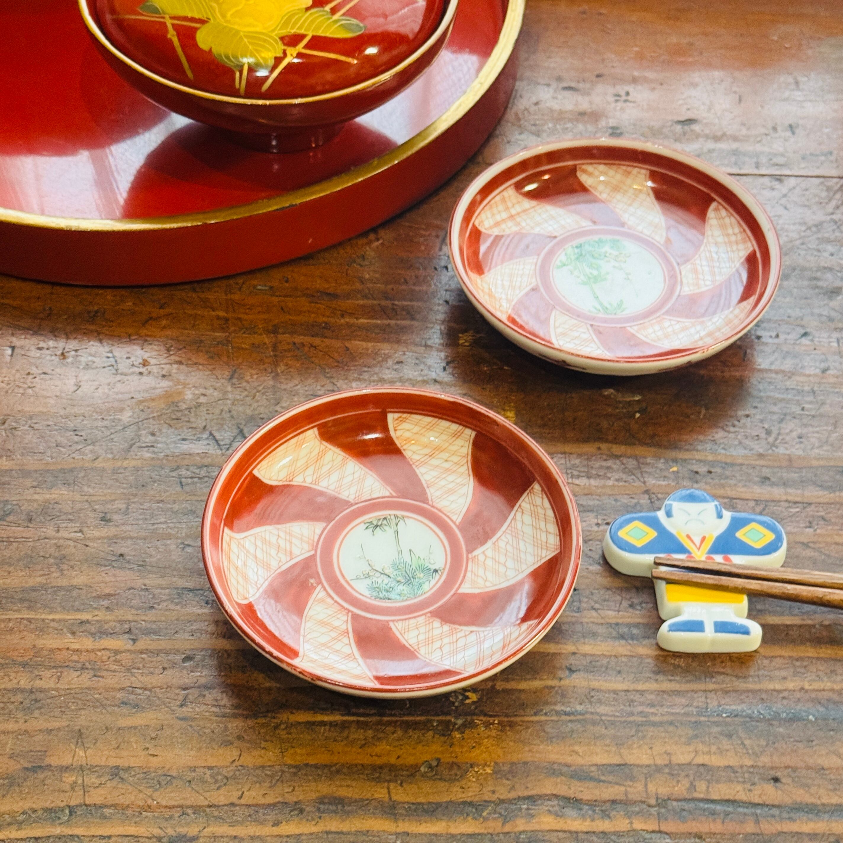 骨董皿 伊万里赤絵捻り文 小皿(明治期頃)松南天文