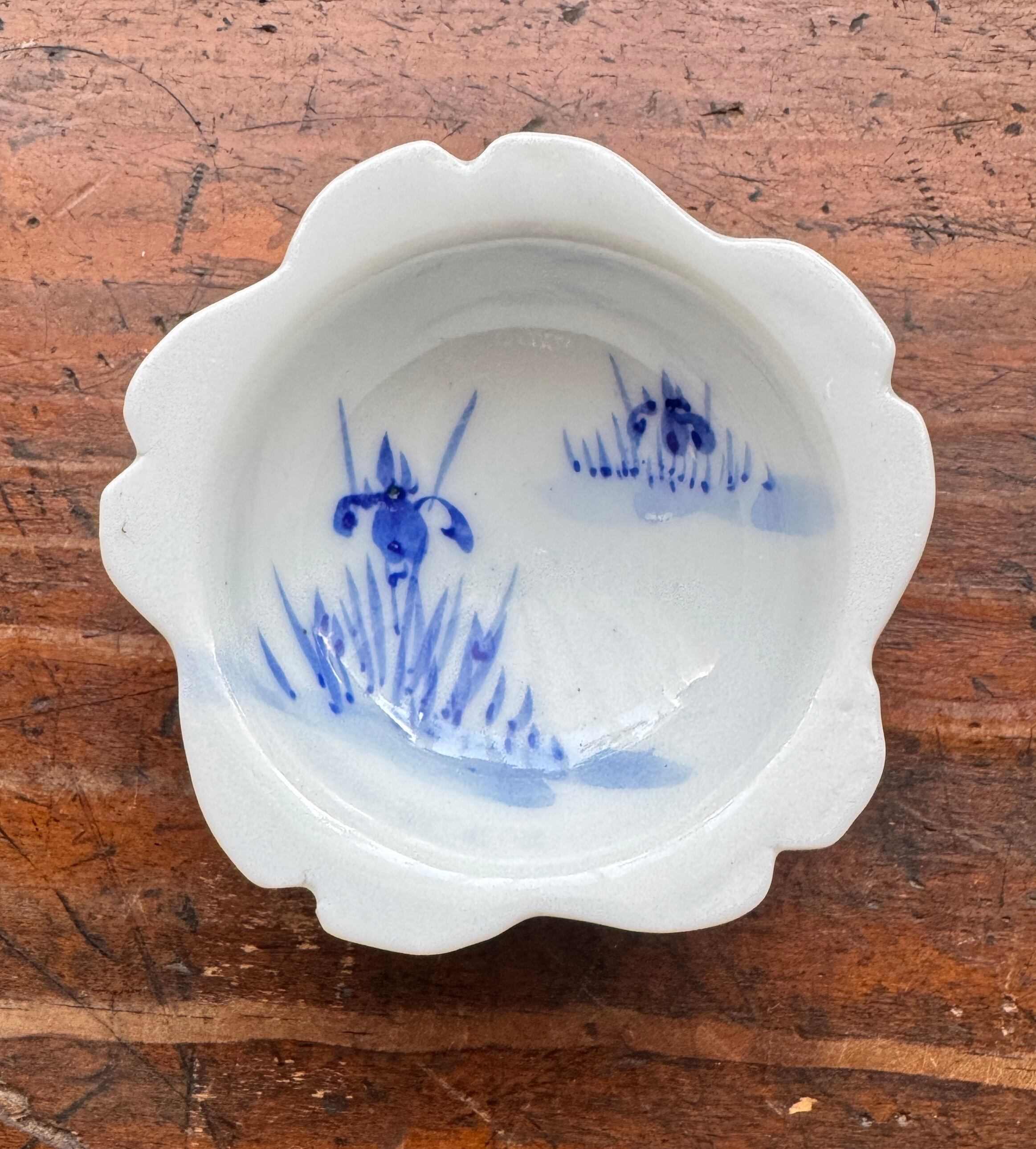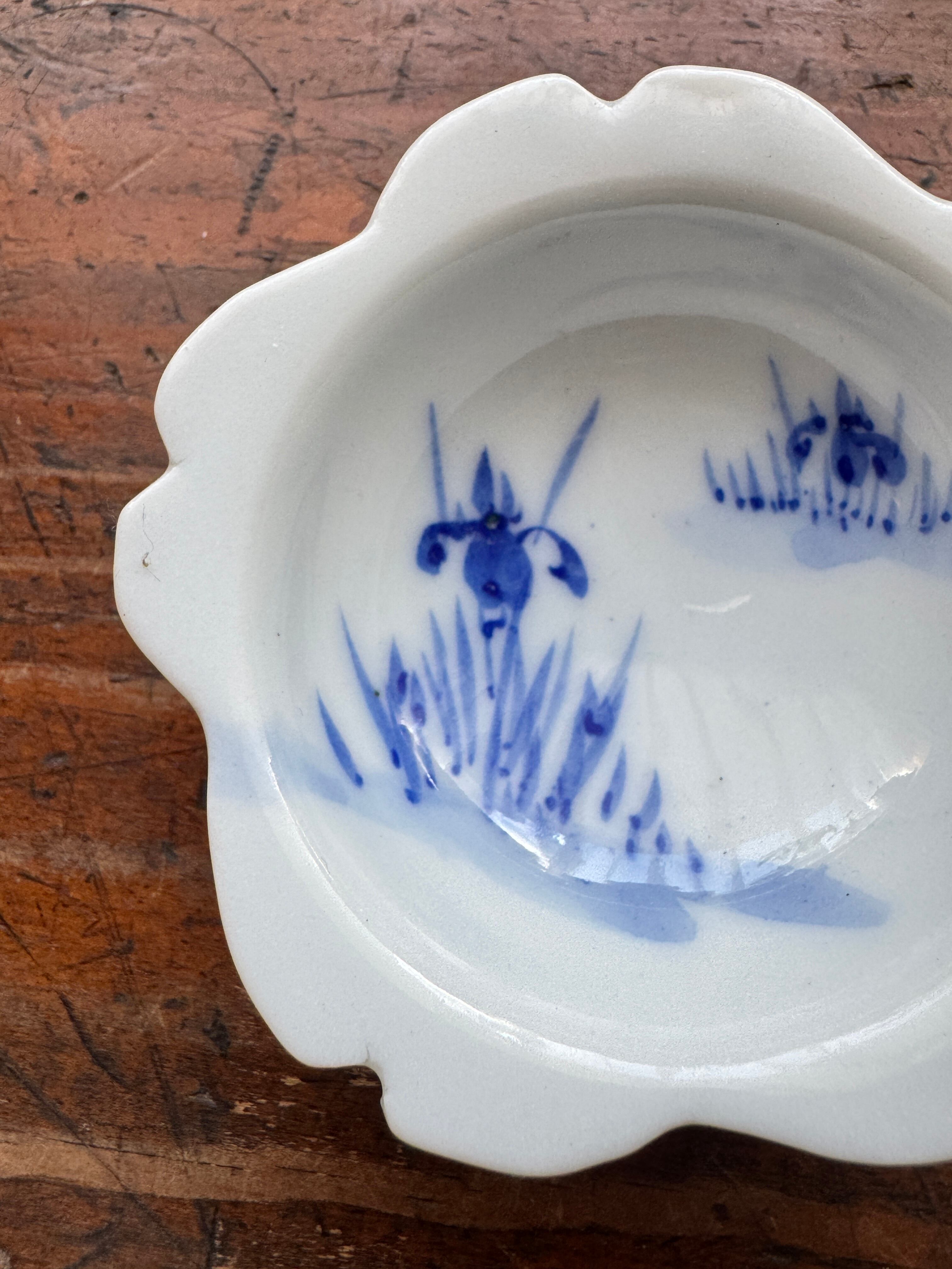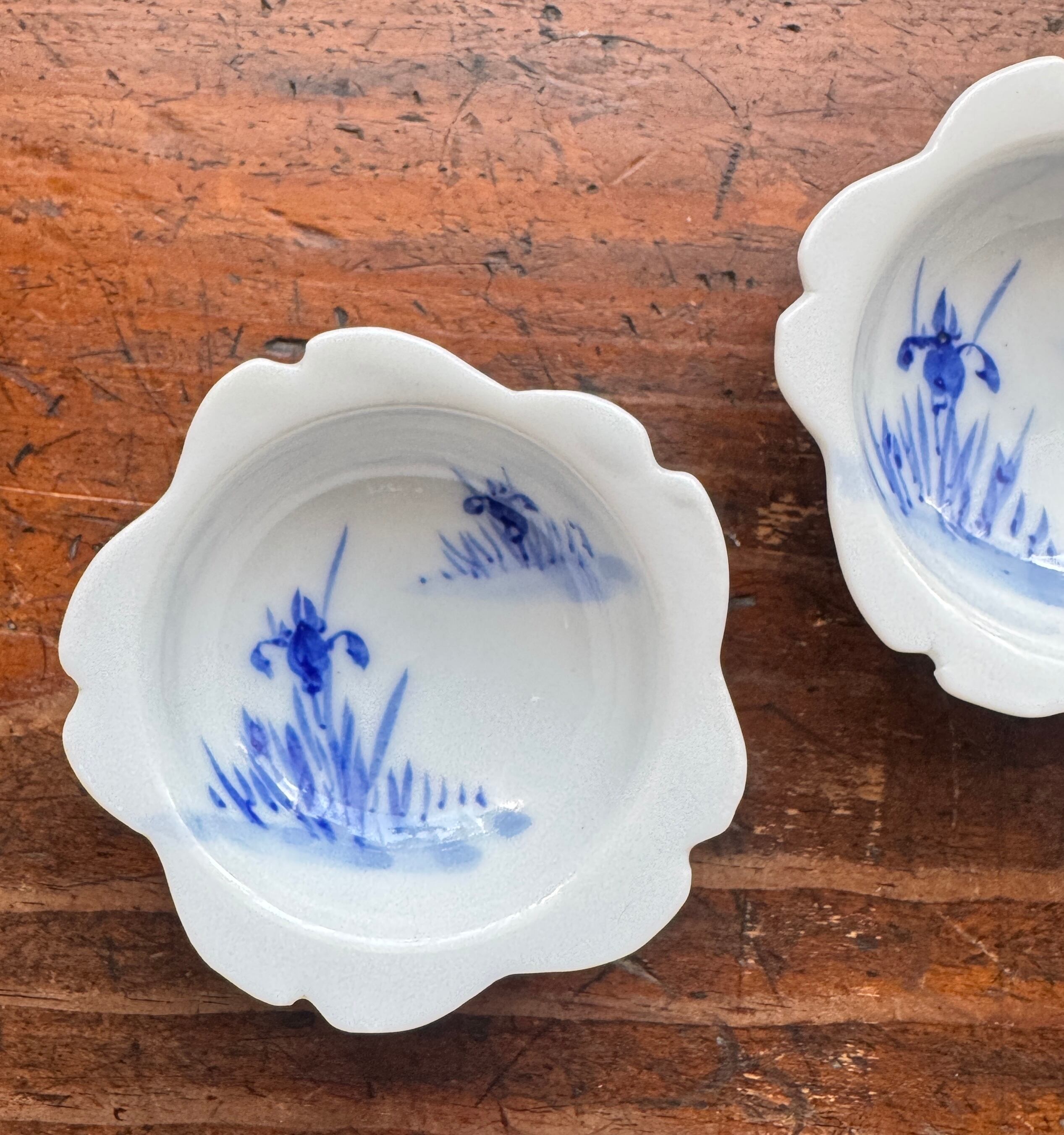 骨董皿 大正期 本膳切身手塩皿 あやめ文 小皿 豆皿 2枚セット