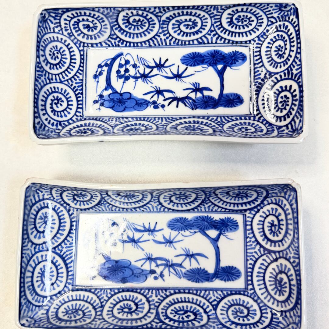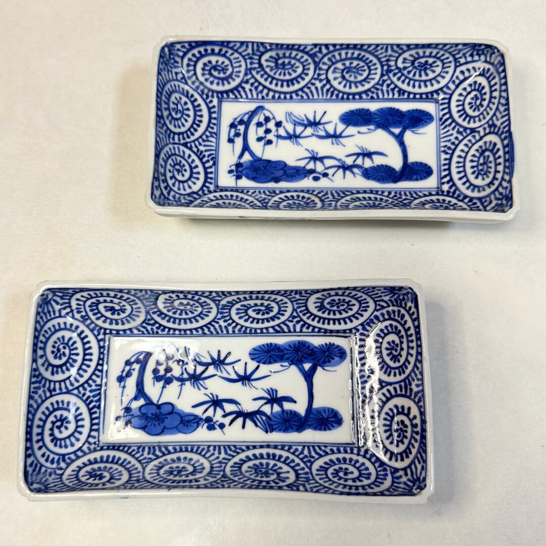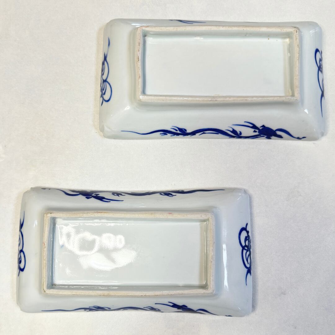 伊万里焼 染付蛸唐草文 角皿2枚セット 日々の暮らしに 明治期