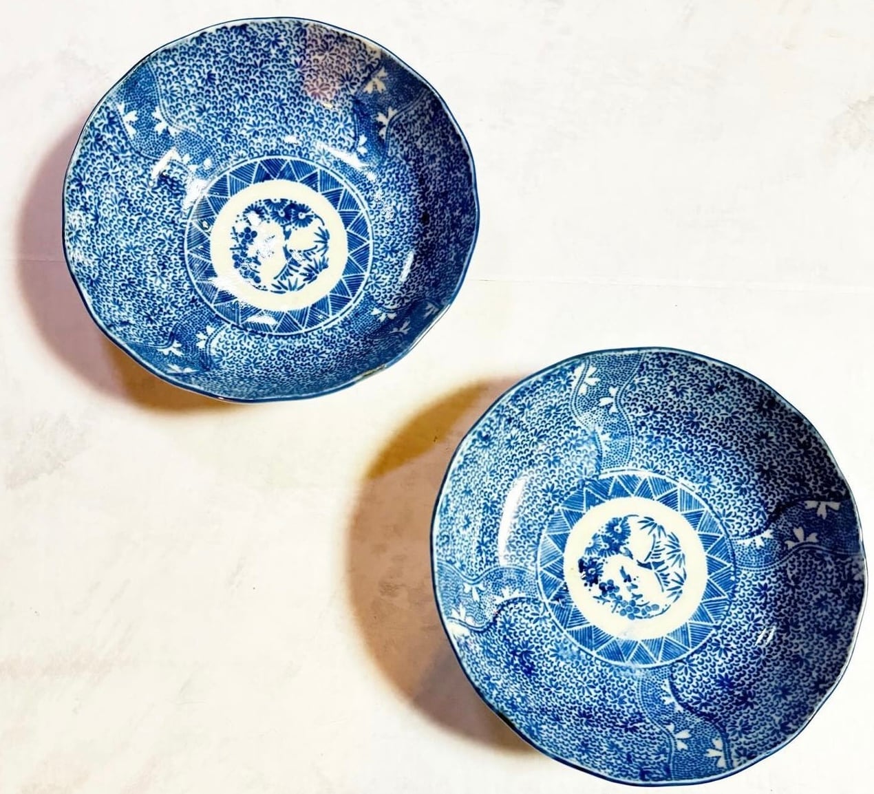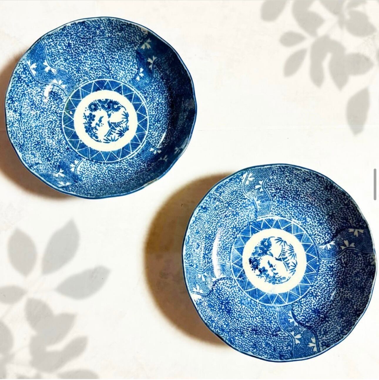微塵唐草松竹梅桜文なます皿 印判皿2枚セット