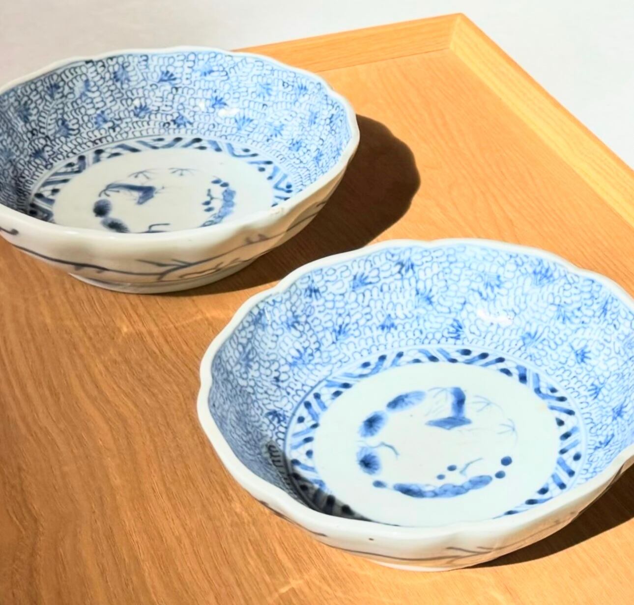 骨董皿 微塵唐草文なます皿 アンティーク皿2枚