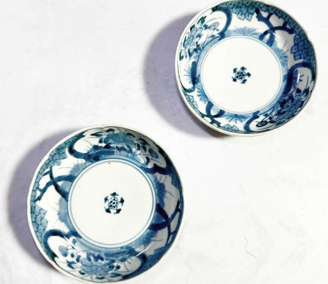 古伊万里染付草加文皿二枚 江戸期 骨董皿 日々の暮らしに 器 なます皿