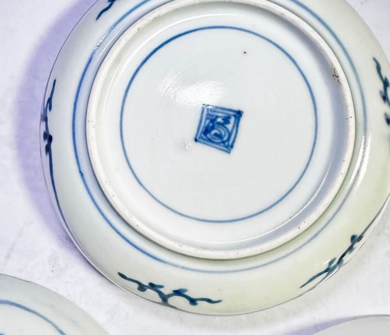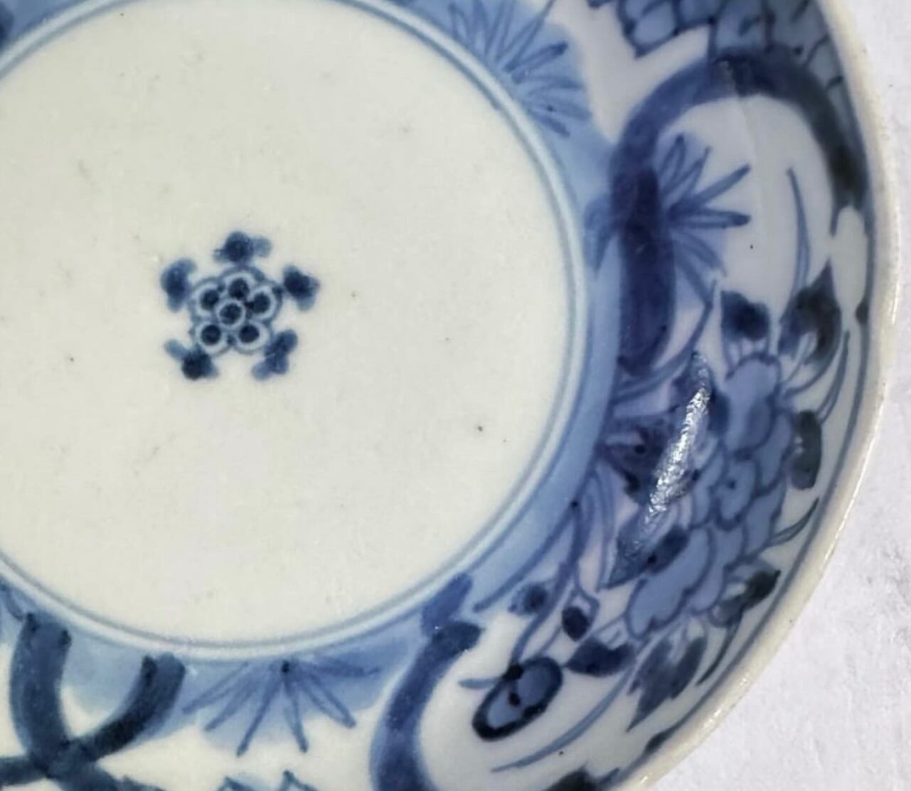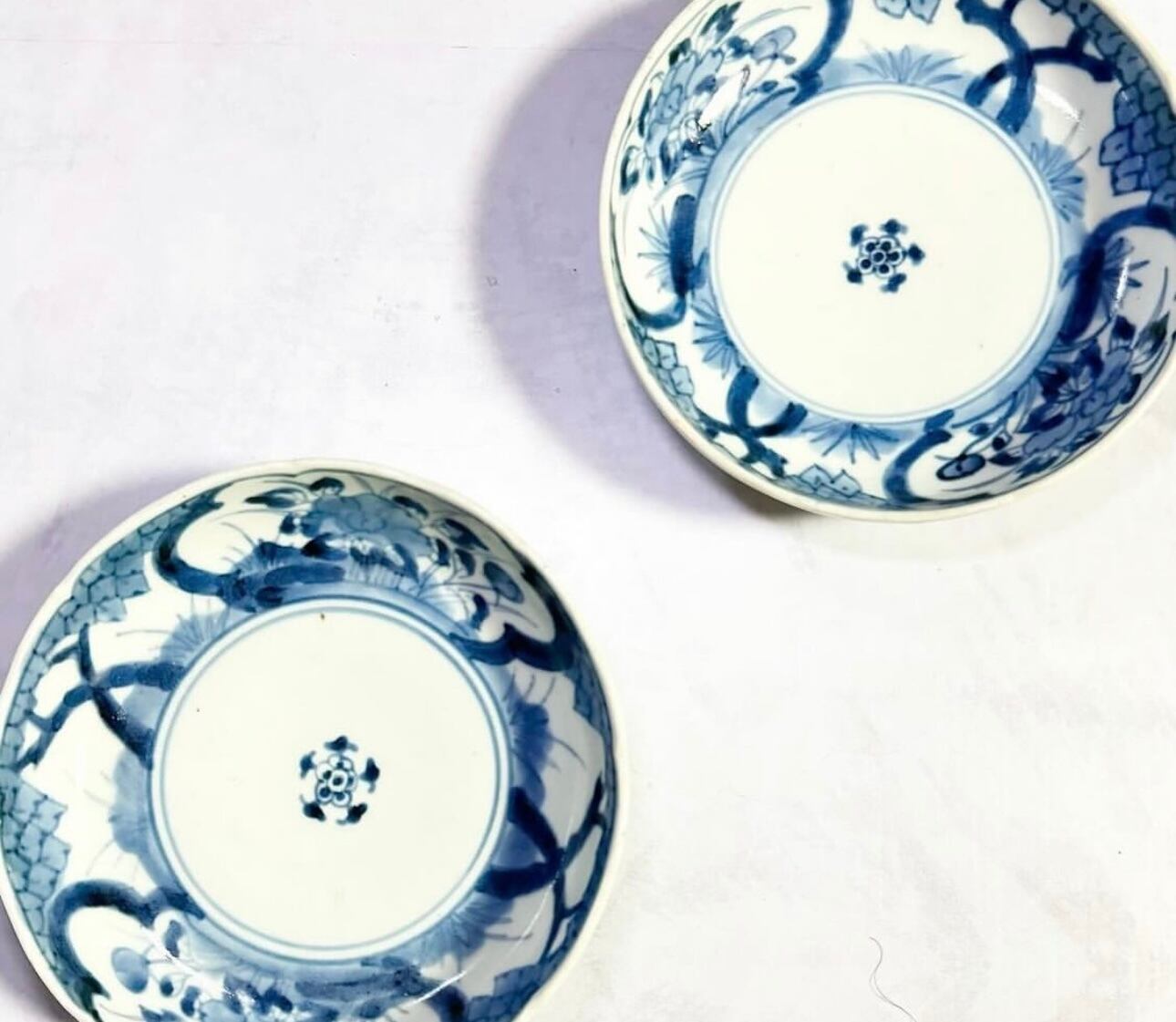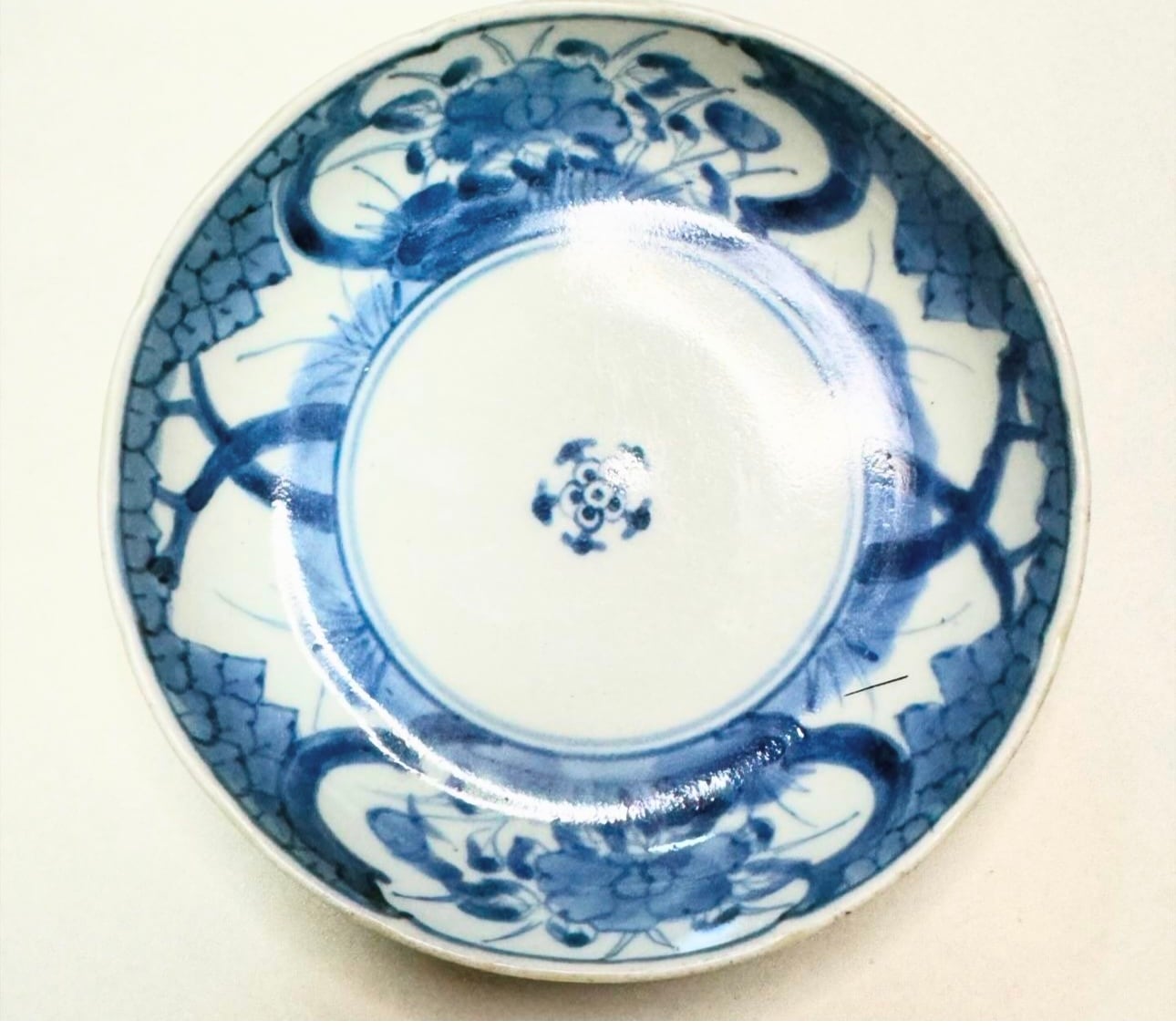 古伊万里の染付皿江戸の絵付けの草花文は、濃淡のあり微妙な色の変化で