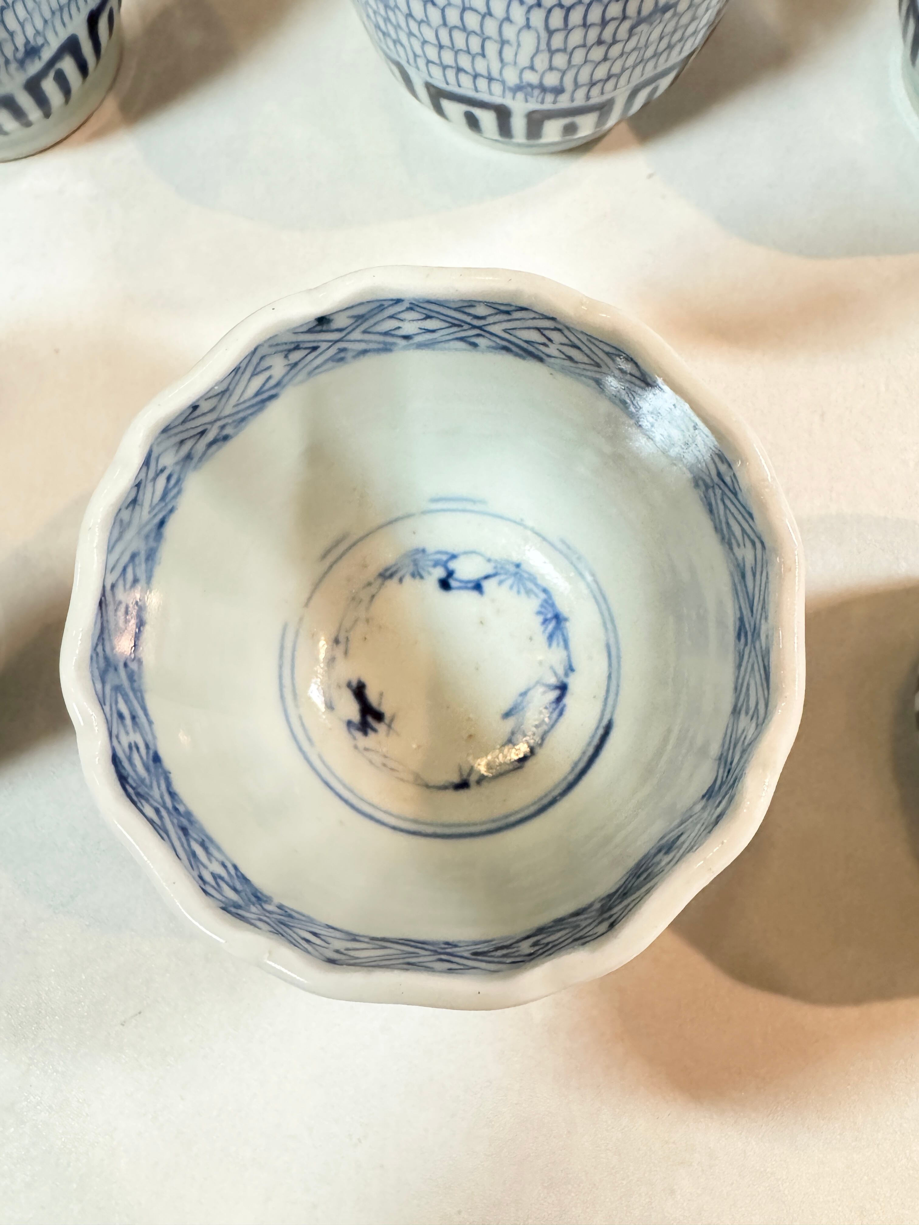 古伊万里染付唐草微塵蕎麦猪口 一客 江戸期アンティーク 染付蕎麦猪口