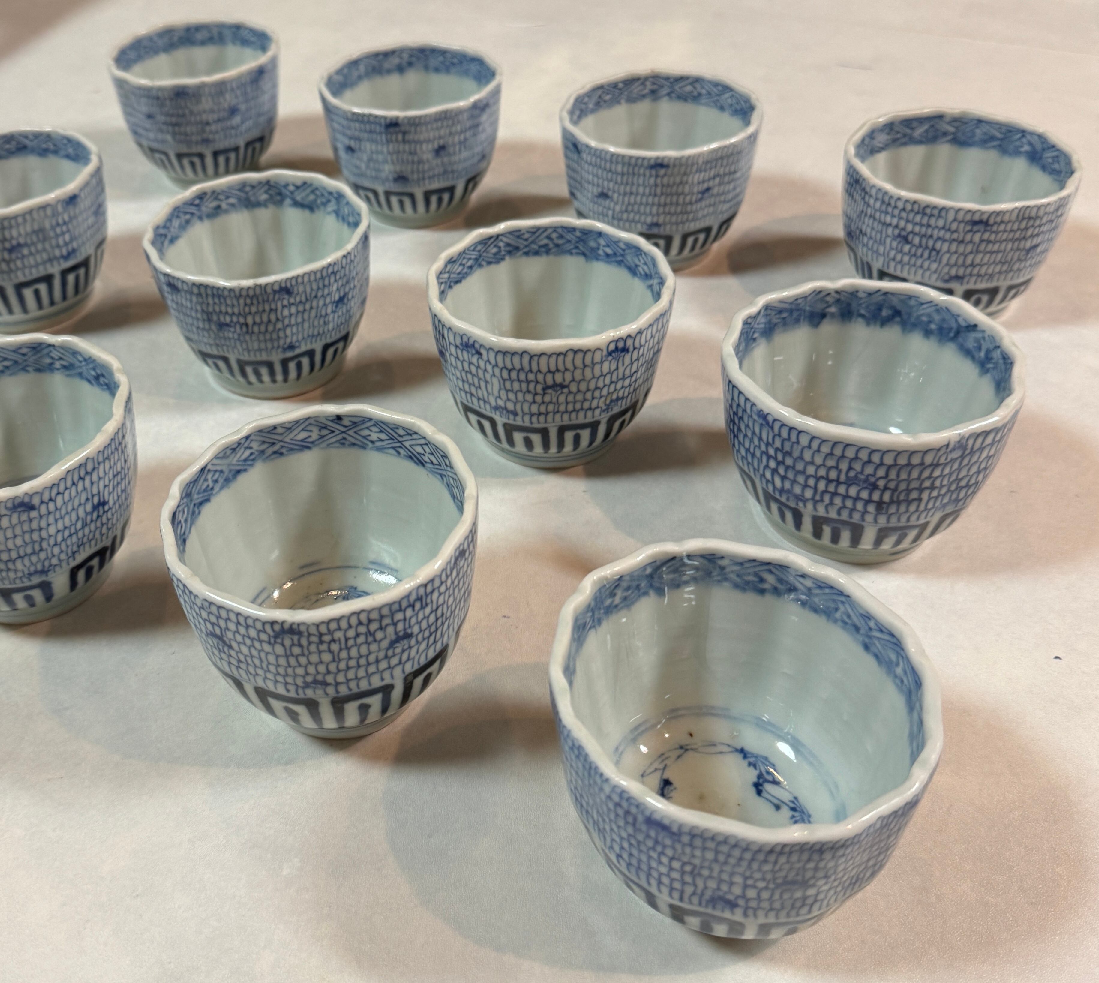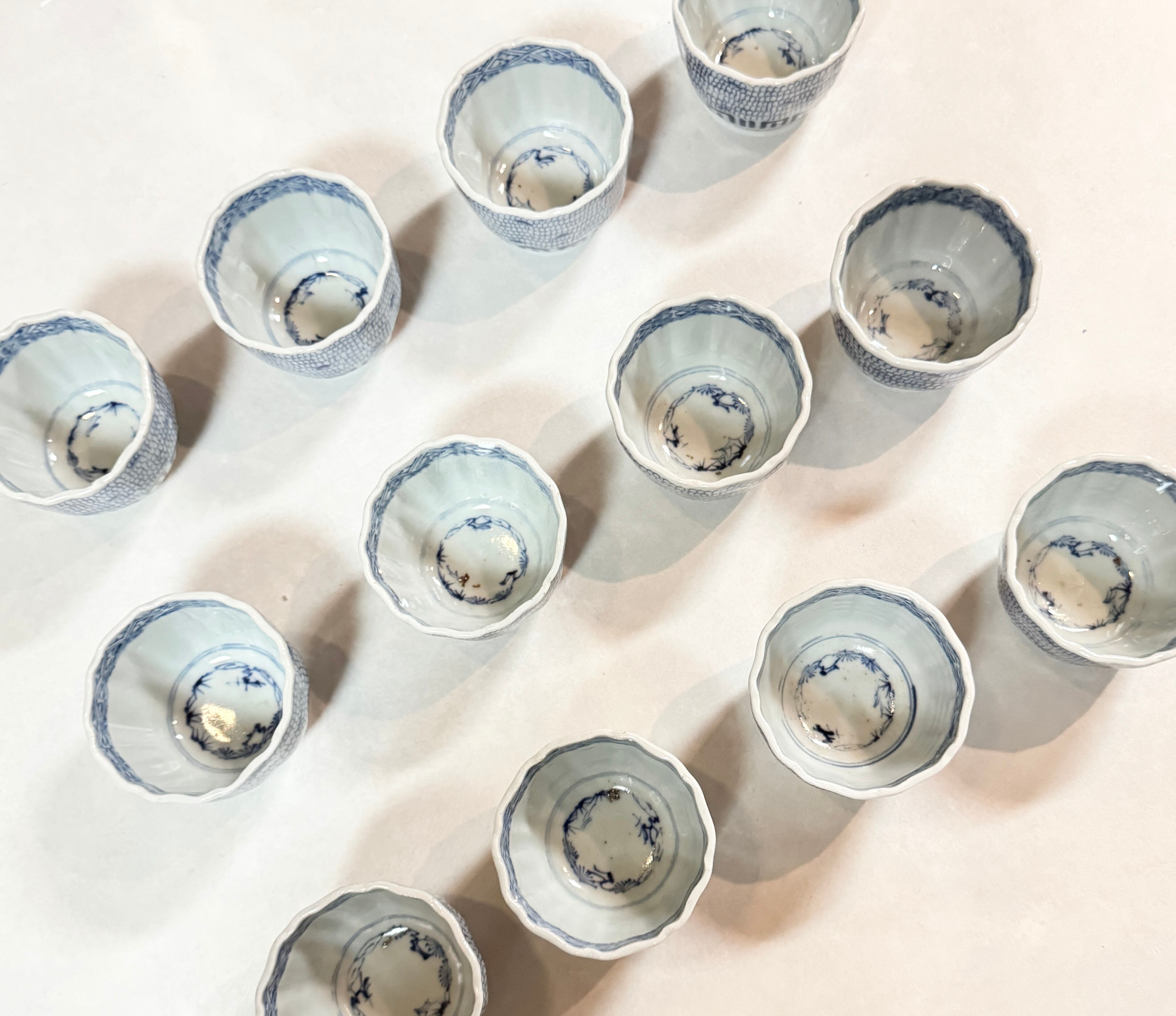 古伊万里 染付唐草微塵蕎麦猪口一客 江戸期 アンティーク染付蕎麦猪口