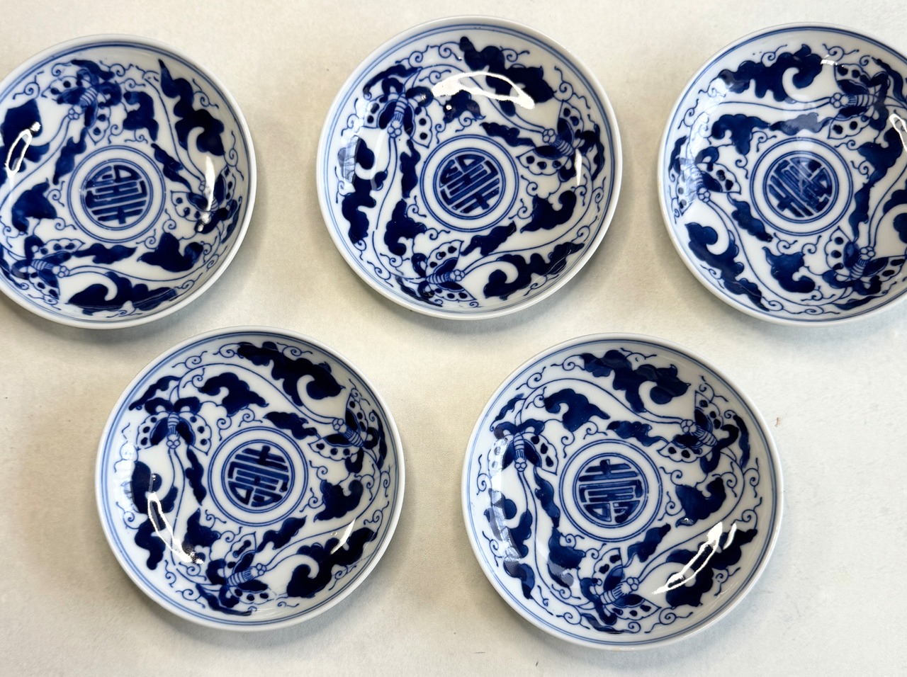伊万里 染付印判皿 吉祥文様 寿蝶草加文5枚セット
