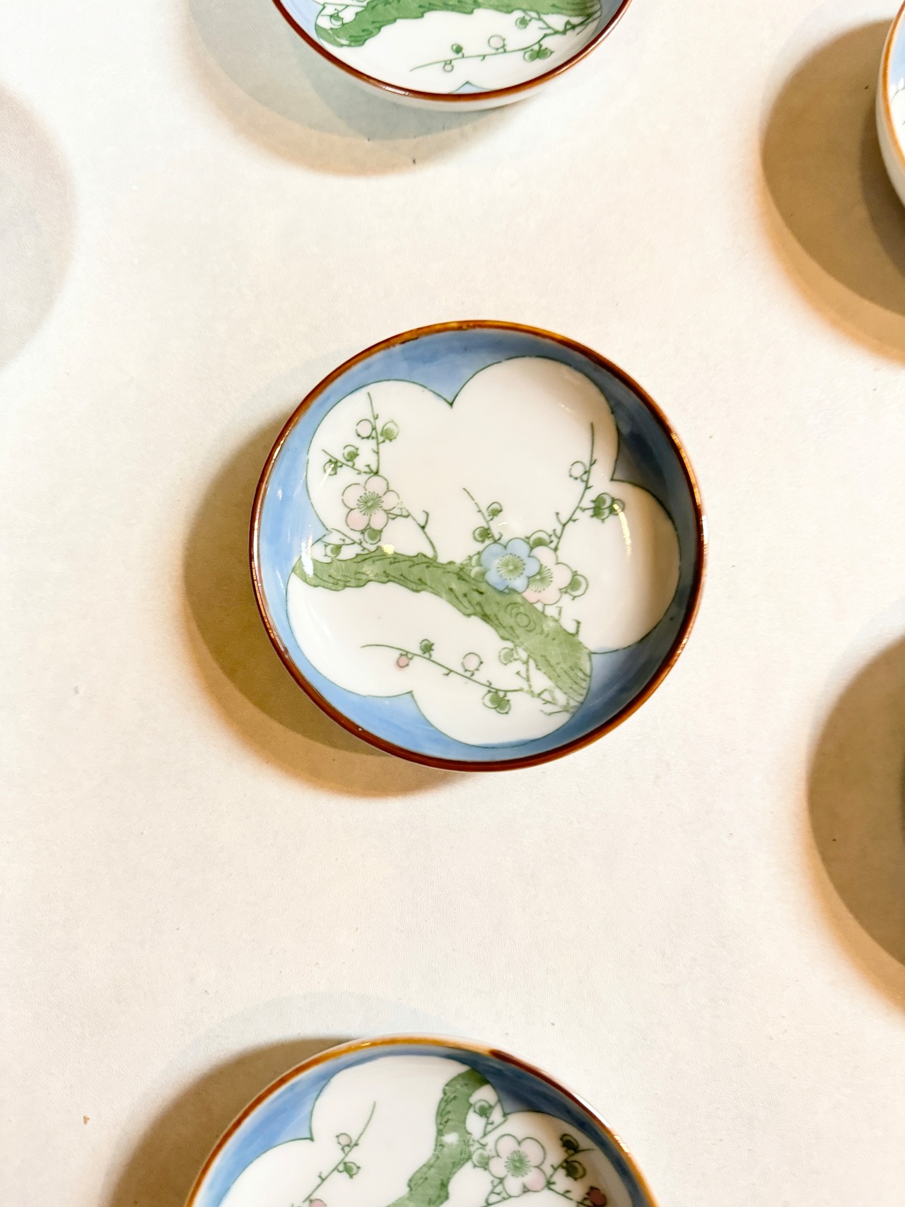 明治期 梅文印判皿 絵付け小皿 5枚セット