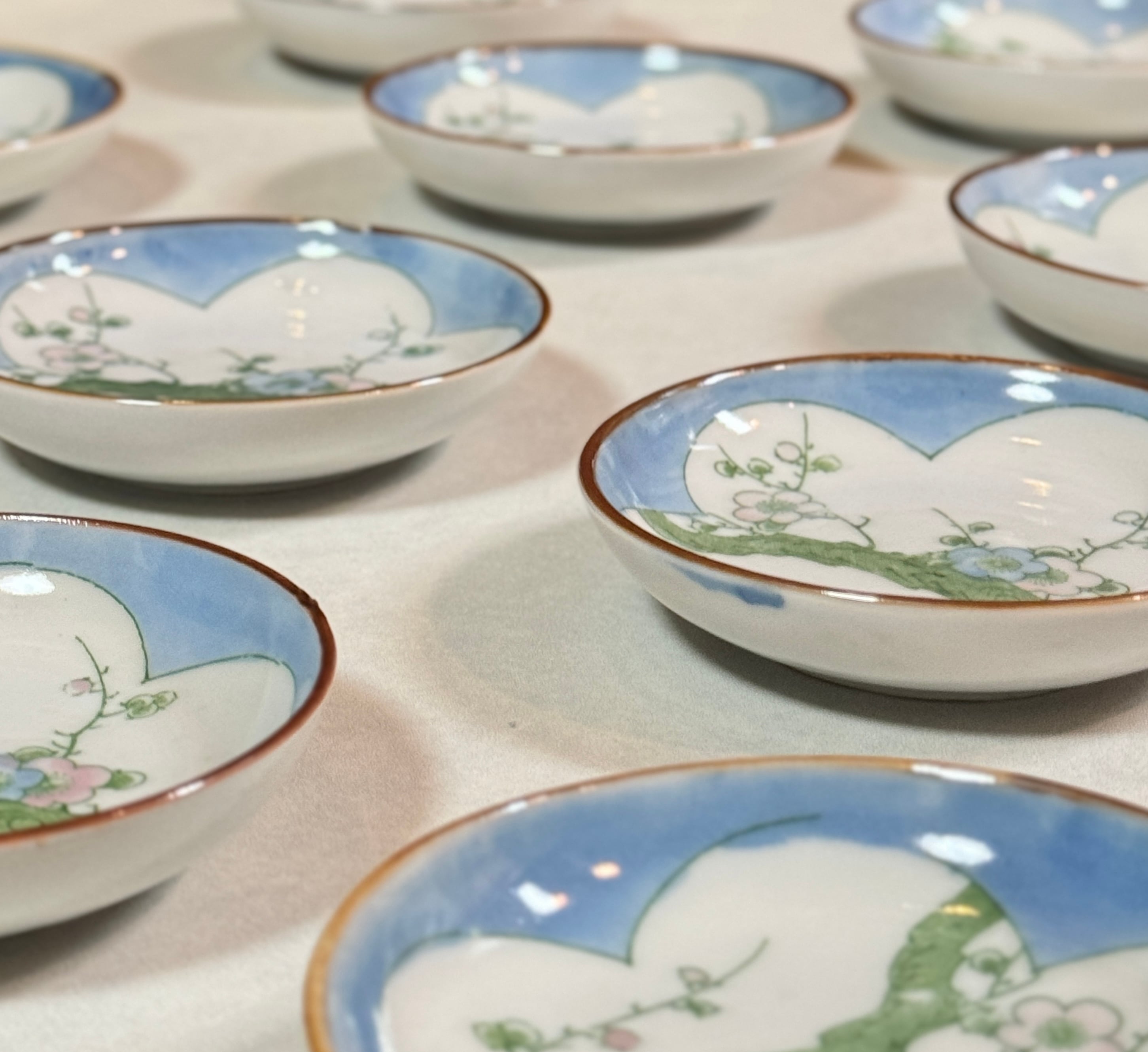 一つ一つが手作りの温かみを伝えます。また、絵付の色合いのかわいさやが絵付けが施された小皿は、食卓に華やかさを添えるだけでなく、職人の技術と芸術性を楽しむことができます
